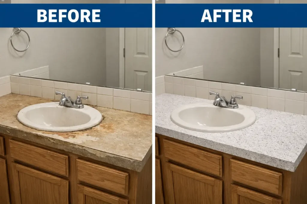 Upgraded Bathroom Countertop Installation - Before & After Results